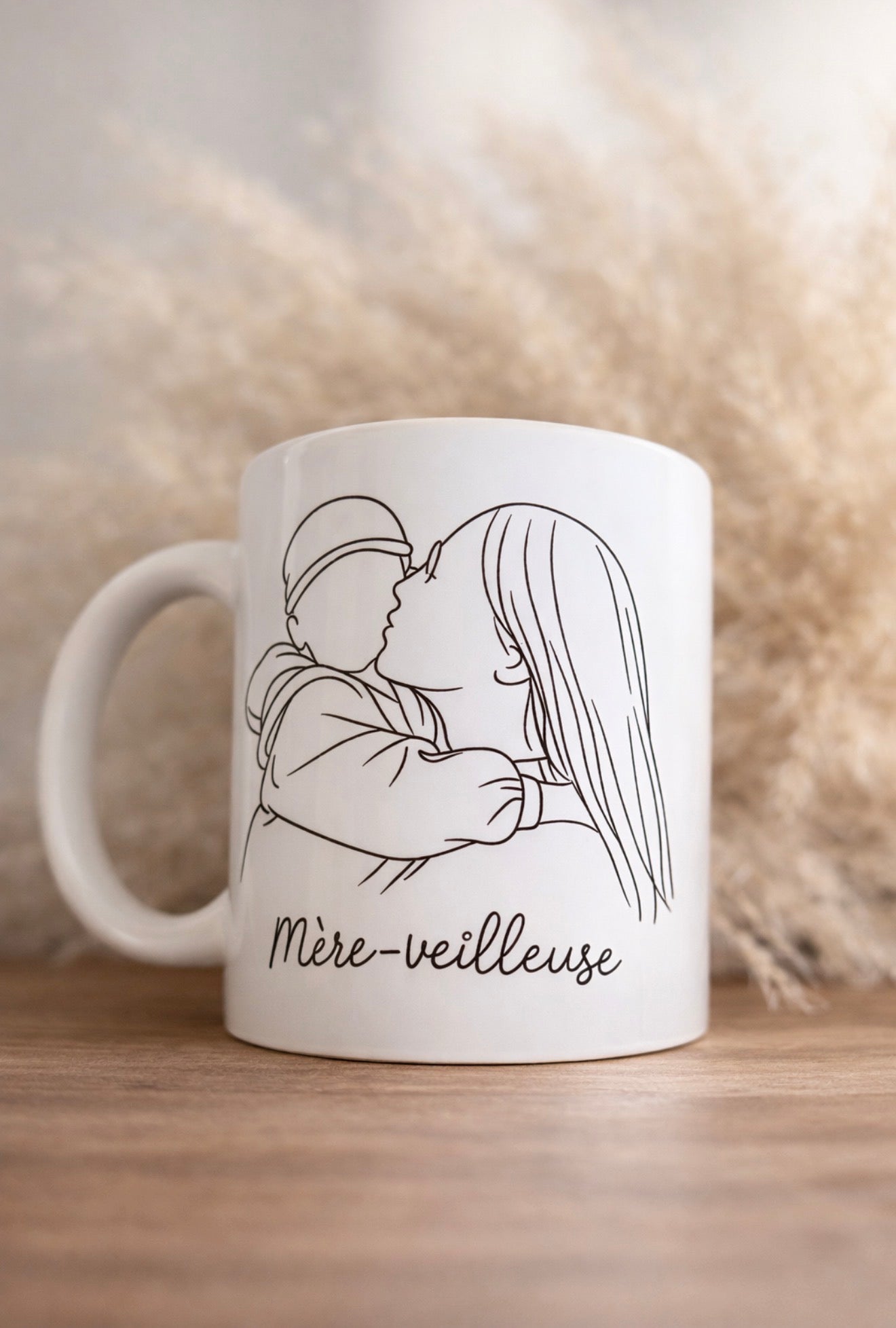À partir de votre photo, nous créons une illustration minimaliste et élégante pour réaliser un mug aussi beau qu’émouvant, parfait à offrir à une maman, mamie, marraine ou à toute la famille.